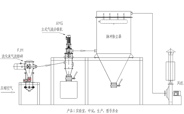 FJM-100 流化床气流粉碎分级机(二合一),同时具备气流粉碎机和独立的气流分级机功能